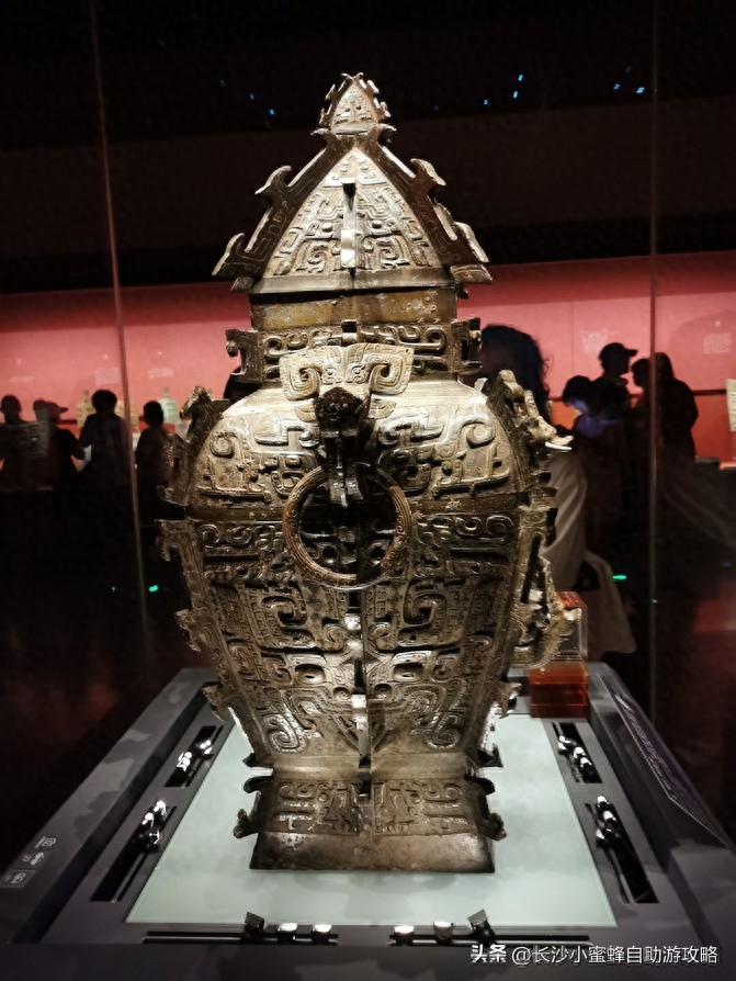 2、皿方罍。上过《国家宝藏》节目,器盖铸有“皿而全作父己尊彝”八字铭文,器身则铸有“皿作父己尊彝”六字铭文,造型庄重,被誉为“方罍之王”,是中国青铜文化鼎盛时期的代表作品。于1919年出土后流失海外,器身和盖子长达一个世纪的分离,于2014年洽购回国入藏湖南省博物馆,得以盖身合体完罍归湘。