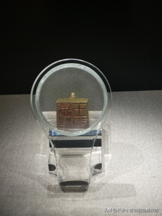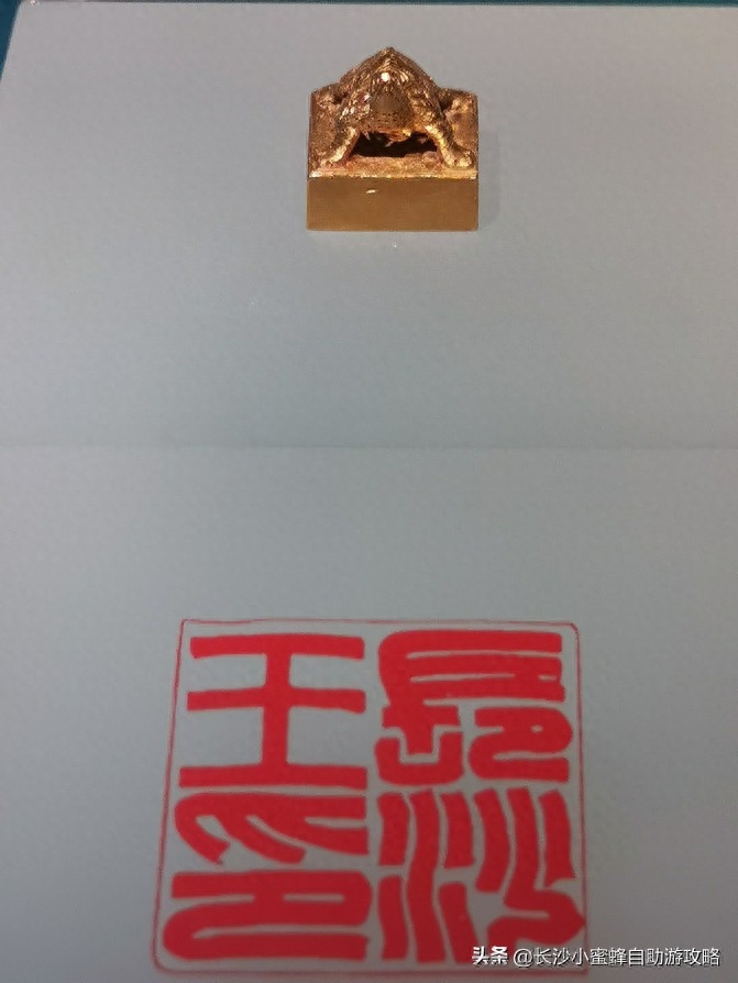 4、长沙王印:29年长沙一起盗墓案成功告破,缴获3多件珍贵文物,其中有一枚长沙王金印和一枚长沙王金玺(现存长沙市博),这两个印章上方皆为龟钮,下方则都是方形印,分别阴刻有篆文“长沙王印”及“长沙王玺”,代表着汉墓墓主人的高贵身份,是某两代刘氏长沙王的金印。