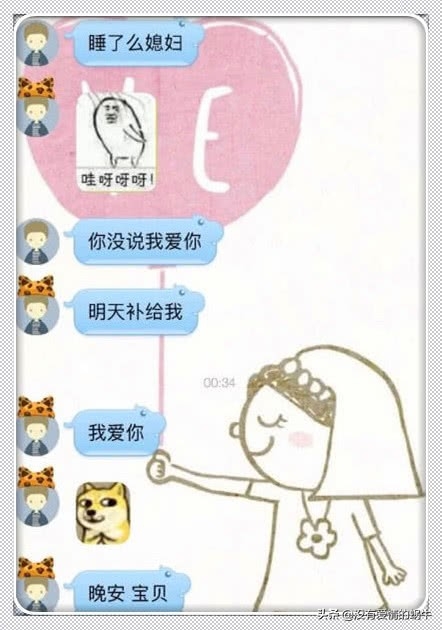 这个男生问自己的女友睡了没,女生没有回复他,然后男生就说女生忘记说我爱你了,还让女生明天补给她,这个男生真的是太可爱了,让人觉得特别的呆萌。过了一会他就又向自己的女友说情话,这样的画面也太 甜了吧!