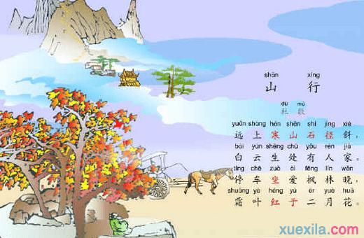 《山行》是唐代诗人杜牧的一首脍炙人口的五言绝句,描绘了诗人在山中行走时所看到的美丽景色和感受。