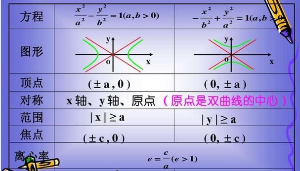 双曲线的定义是平面上到两个给定点的距离之差为常数的点的轨迹。这两个点被称为焦点,常数称为离心率,离心率大于1时表示双曲线开口朝向x轴方向,离心率小于1时表示开口朝向y轴方向。