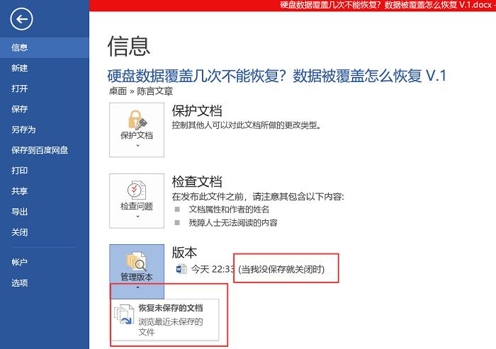 如果在您删除Word文档之前启用了文件历史版本功能,您有机会通过此功能找回被误删的文件。