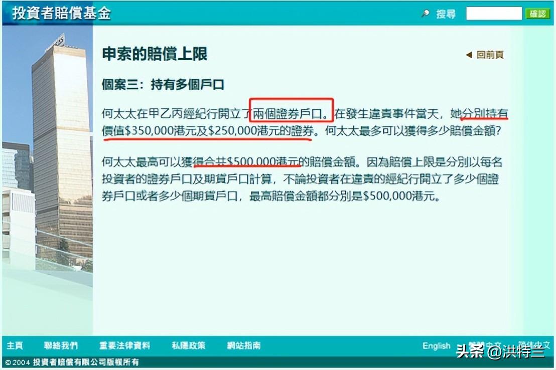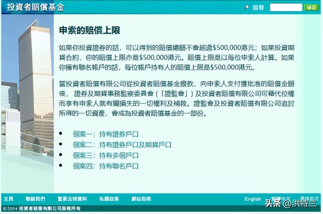 那么问题就来了,券商倒闭或者像国内前几年的P2P一样卷钱跑路的话,投资者资金就存在风险了,这也是有可能的,虽然发生概率极低。但是也不必担心,香港持牌券商倒闭,有投资者赔偿基金(The Investor Compensation Company Limited (hkicc.org.hk)),赔偿总额的上限为50万港元。