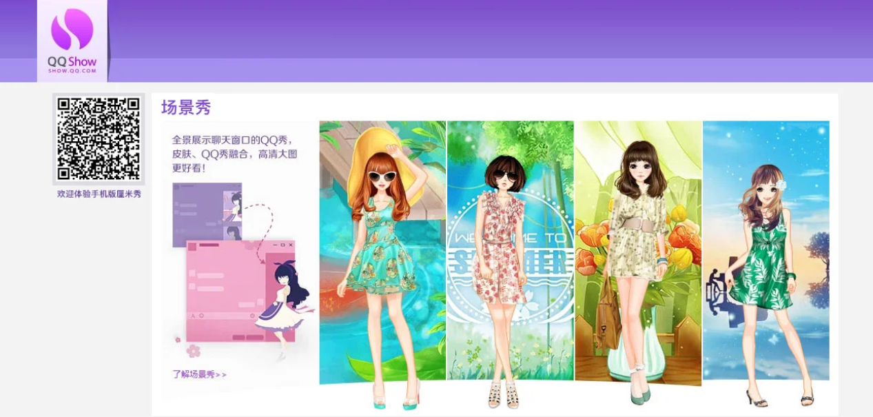 这是腾讯推出的网络个人形象装扮系统,是网络世界展示自己独立个性的平台。在20年前的学生时代,很多用户都有装扮QQ秀的回忆,在里面,可以自由搭配时尚,可爱,酷帅,非主流,潮流等各种风格服饰;更有更有真人秀,照片秀,动态秀等等玩法。