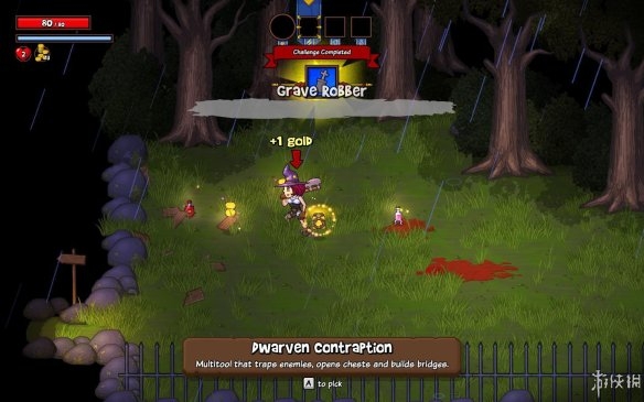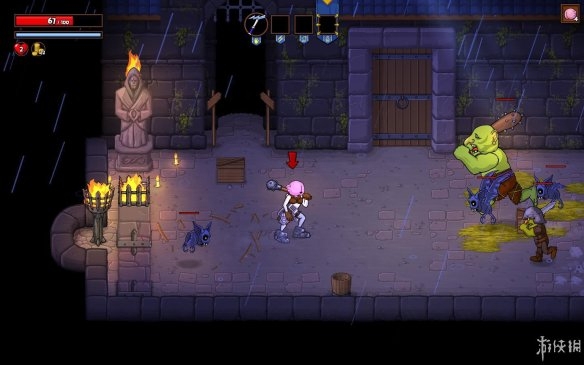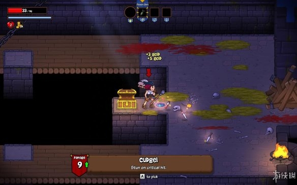关卡内大部分的障碍,摆设都可以被摧毁。玩家在关卡中除了需要清理掉里面的怪物之外,各种其中的摆设也统统不要放过,每一处可以破坏的摆设中可能都会隐藏着金币和血药等等物品。若是出现了宝箱那就更是一种惊喜了,游戏中玩家要想拿到宝箱内的东西,需要先做一个开锁的小游戏,若是失误小游戏失败,玩家将会受到扣血的惩罚,挺有意思。