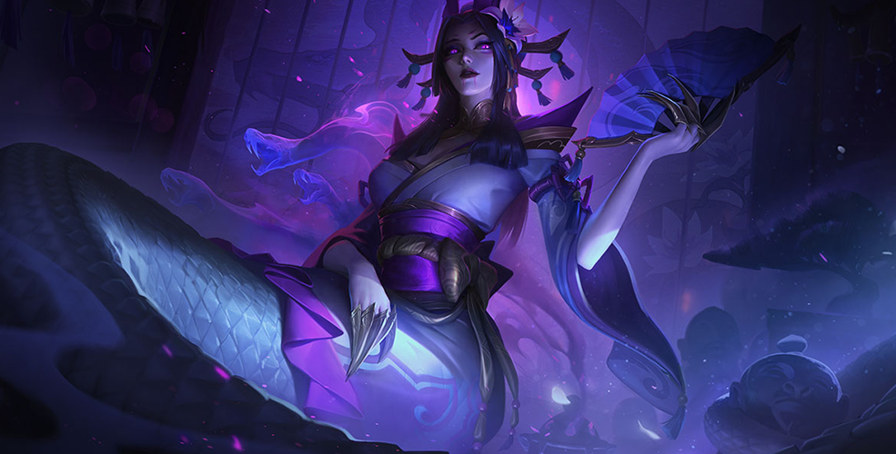 卡西奥佩娅是卡特琳娜的亲妹妹。和姐姐不同的是,卡西奥佩娅继承了母亲的美貌,更擅长用计谋玩弄敌人。为了得到更强大的力量,卡西奥佩娅决定前往恕瑞玛古墓,最终被古墓守卫咬伤,变成了现在这半人半蛇的样子。