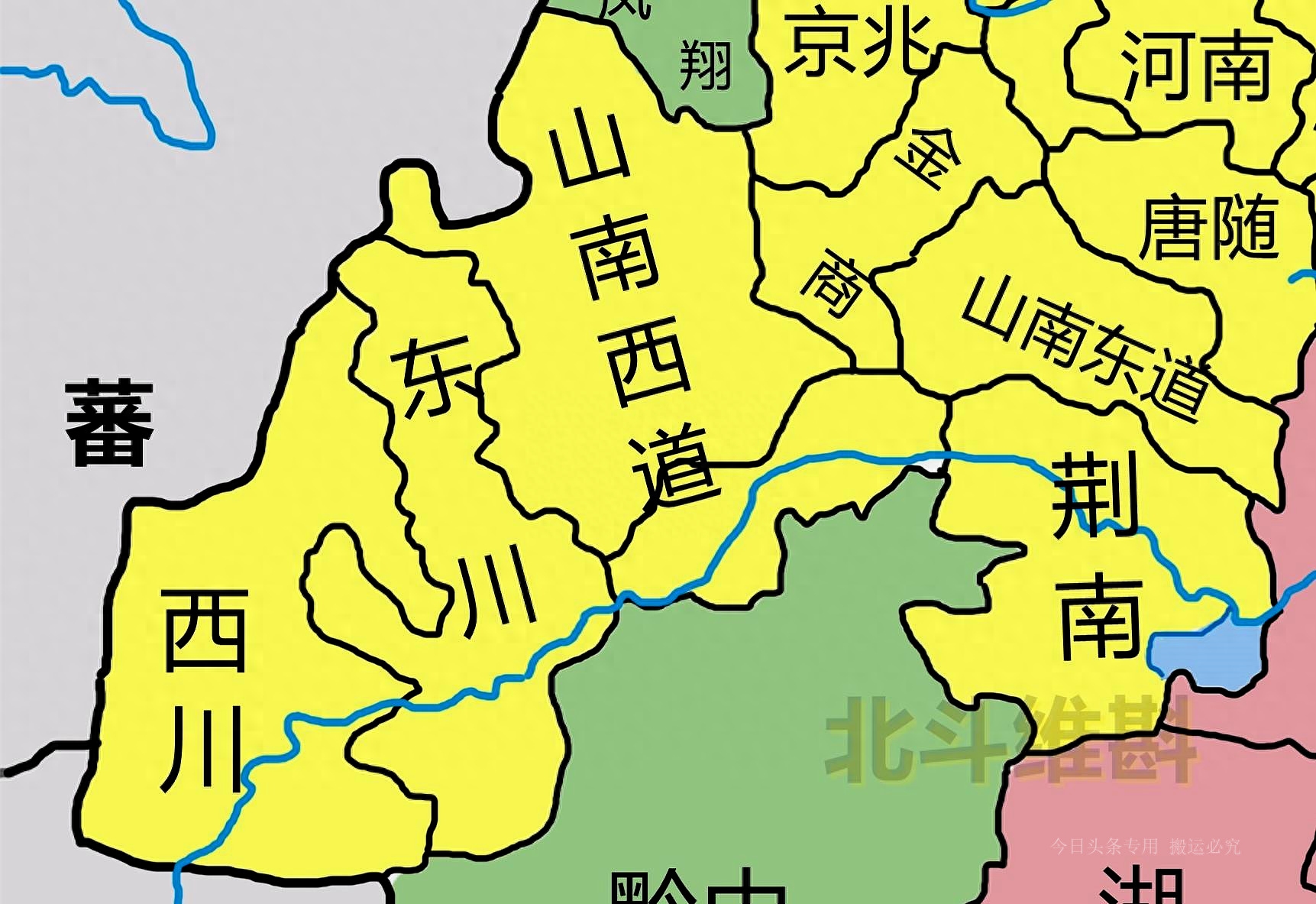 需要注意的是,在南北朝时期,巴蜀虽然出现了割据政权,但行政区划依然保持并列状态。这一模式在唐朝得以延续。唐朝划分了多个道,其中成都平原划为