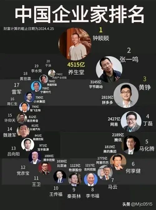 这些富豪们不仅是财富的象征,更是中国经济发展的重要推动力。他们通过各自的努力和创新,在不同领域中取得了令人瞩目的成就。他们的成功故事不仅激励着新一代创业者,也展现了中国经济的活力和潜力。在未来,我们期待看到更多这样的企业家不断涌现,共同推动中国经济的繁荣发展。