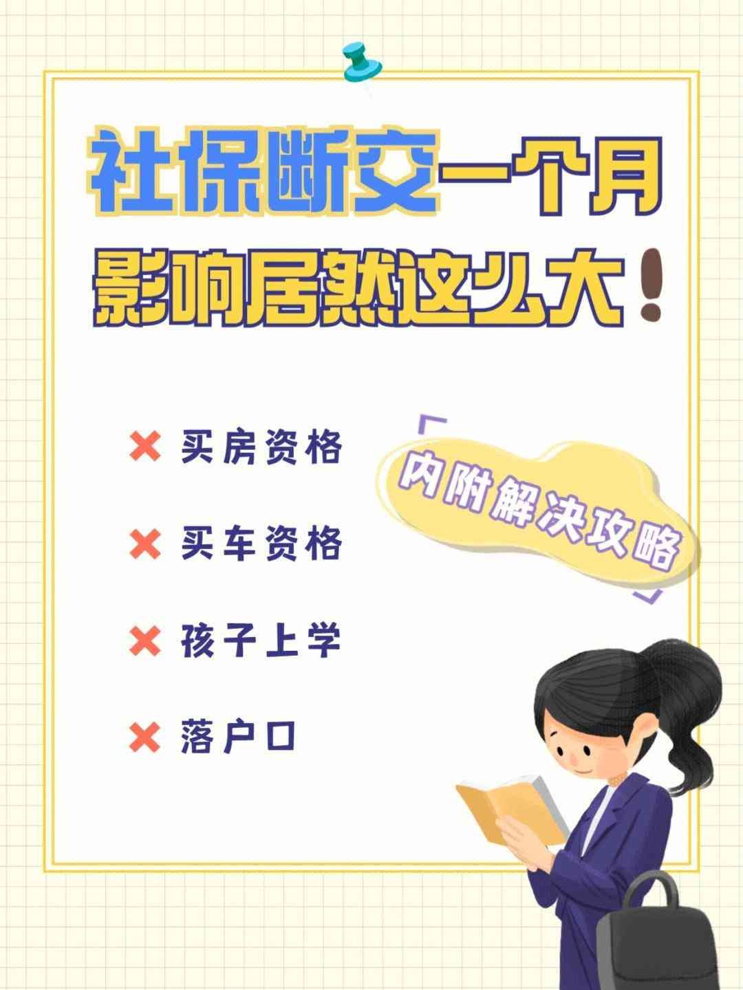 及时办理相关手续:如果个人需要中断缴纳社保,应该及时办理相关手续,避免社保费用产生不必要的滞纳金等费用。了解政策:个人应该了解当地的社保政策,特别是对于一些特殊情况的处理方式,避免因为不了解政策导致社保断交。除了以上提到的补救措施和预防措施,以下是一些关于社保断交的进一步建议:
