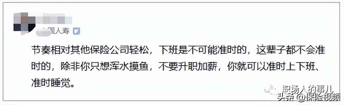 像这位网友说的,在人寿里面工作,相对于别的保险公司来说还是比较轻松的,但是轻松归轻松,下班却不能准时,除非自己想摆烂,不想升职加薪了。