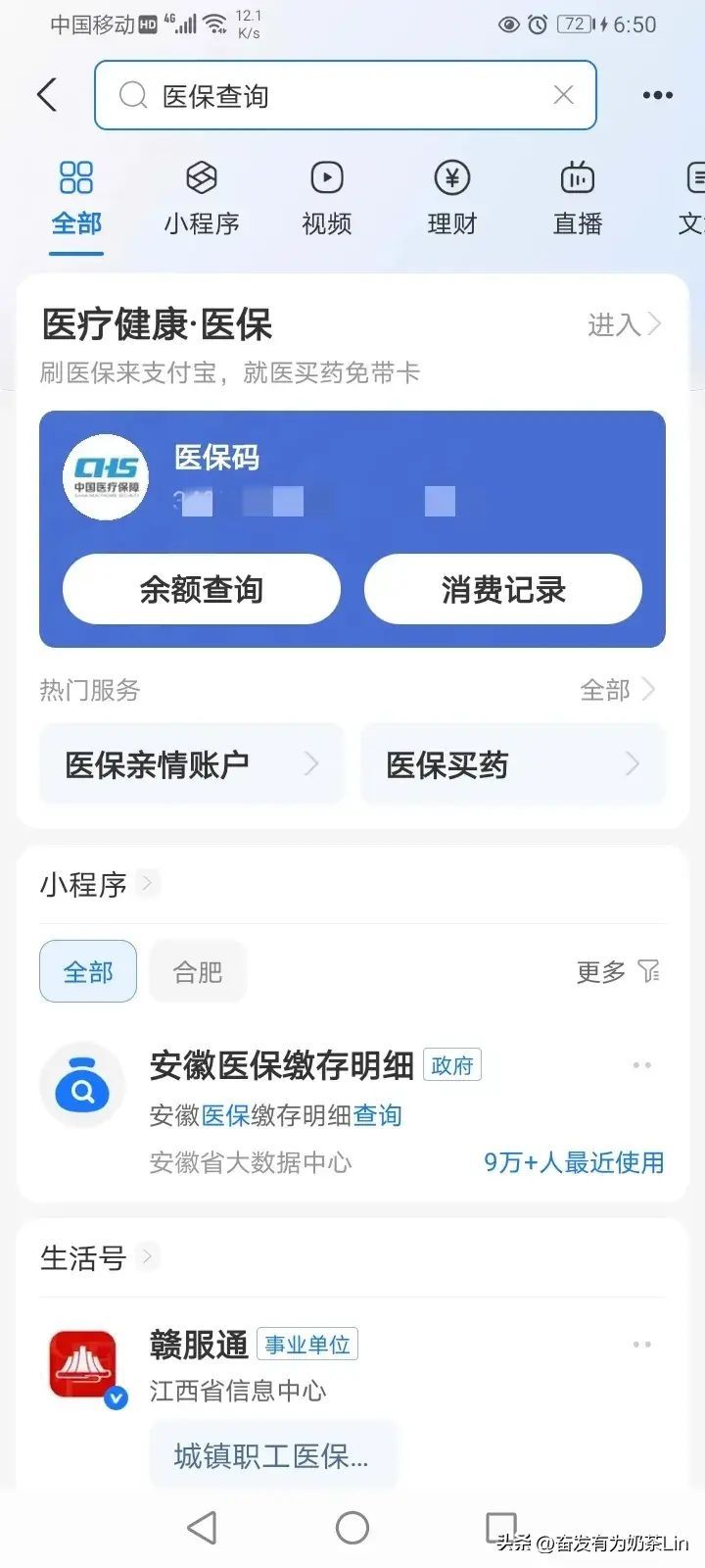 1.打开支付宝。在首页最上边搜索框输入城市+医保查询。如你社保所属地在合肥,输入合肥医保查询。点击搜索,弹出页面如下图。