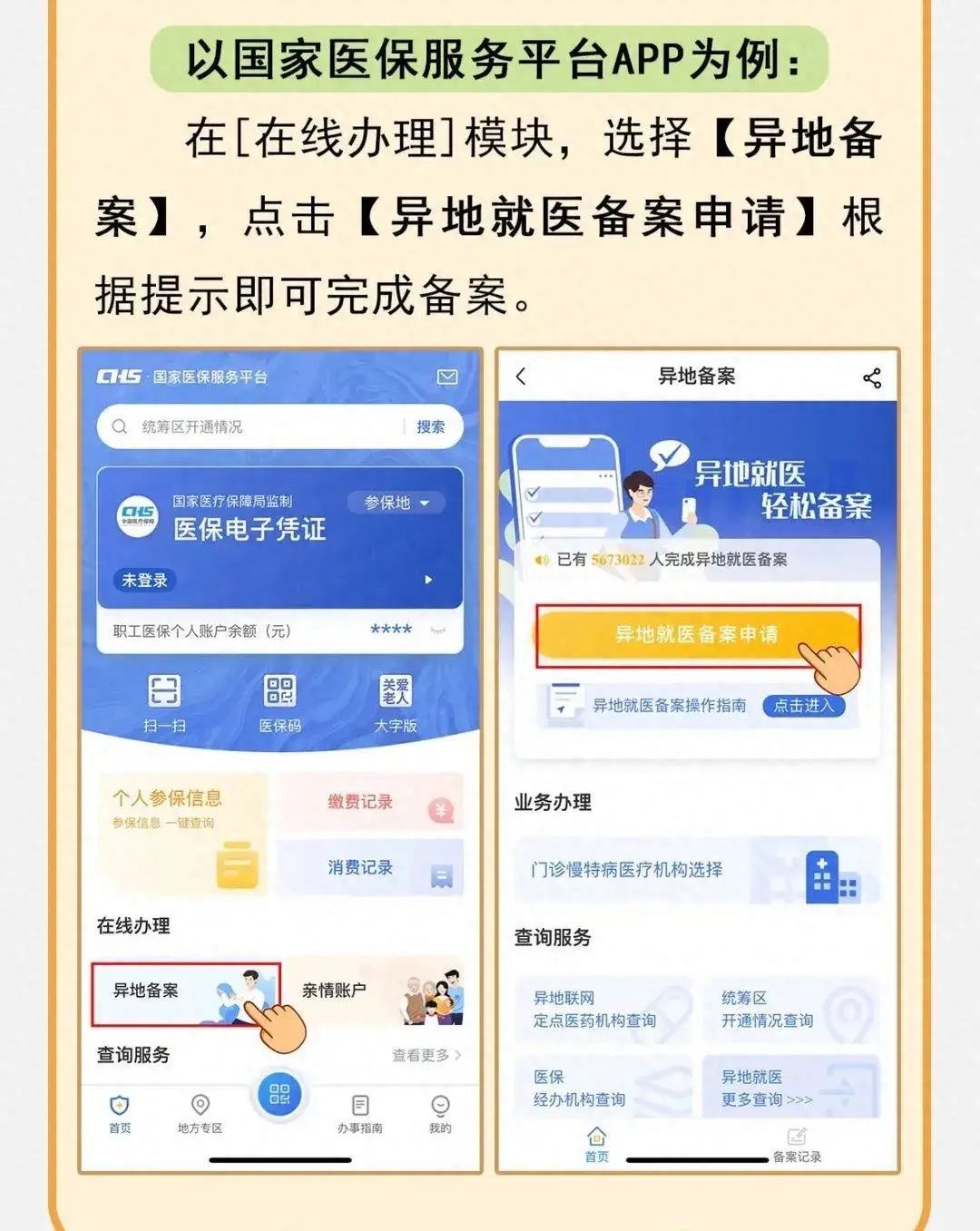 第一先备案。参保人员可以通过国家医保服务平台APP、“国家异地就医备案”小程序以及当地医保部门小程序等渠道快速办理异地就医备案。