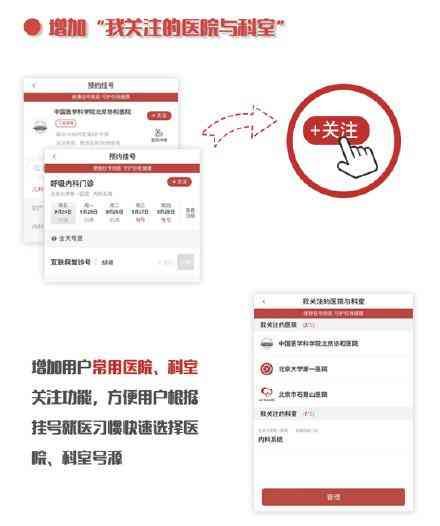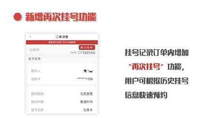 此外,“京通”健康服务专题设计全新界面,对科室预约、医院信息、放号周期、地图功能、就诊人绑定规则等多个功能模块进行优化,更加实用、方便;新增“我关注的医院与科室”,方便用户快速选择;新增“再次挂号”功能,用户无需再次填写个人信息;新增“重点科室标识”,方便用户了解不同医院和科室特色;新增短信推送提醒服务,方便用户及时查阅检验检查报告。