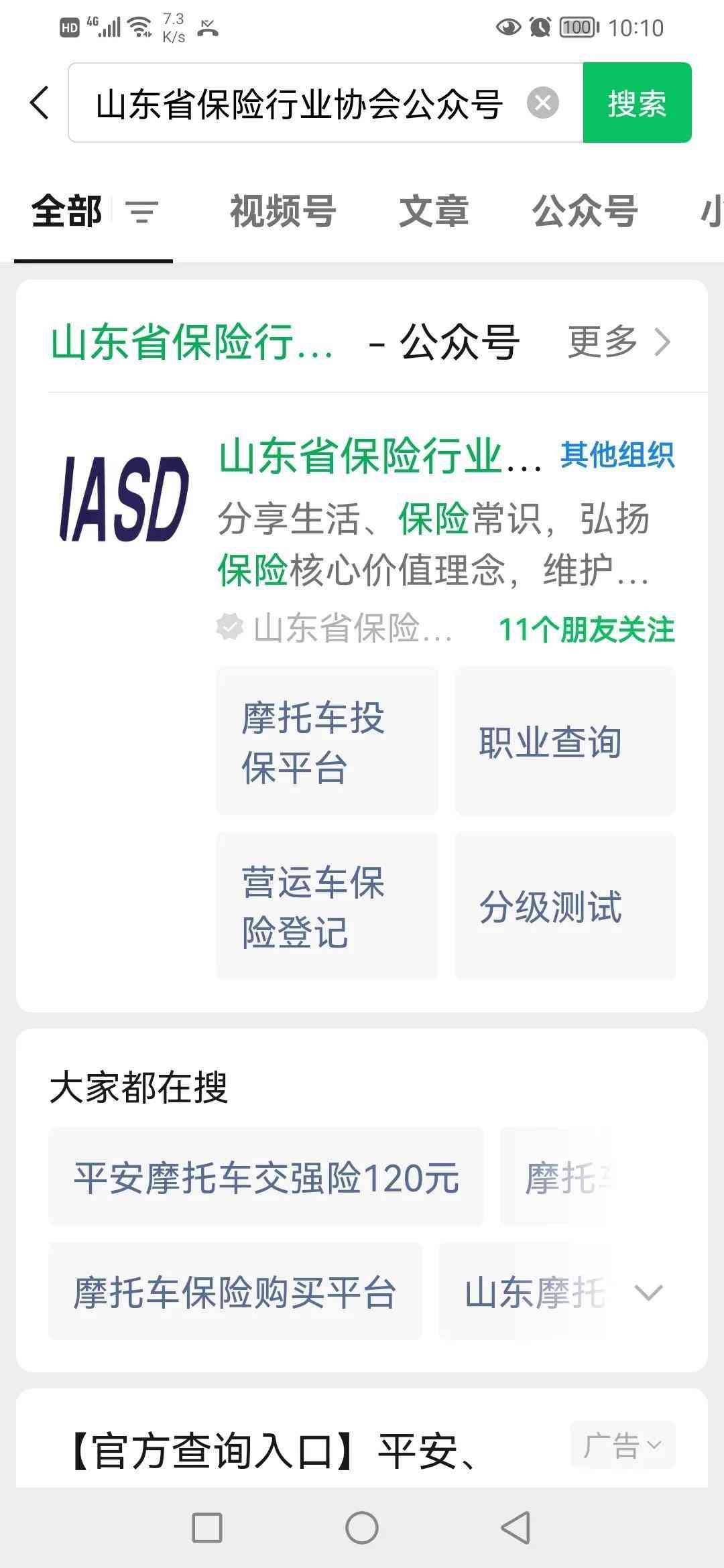 进入这个平台的方法很简单,微信搜索“山东省保险行业协会”微信公众号,先关注。