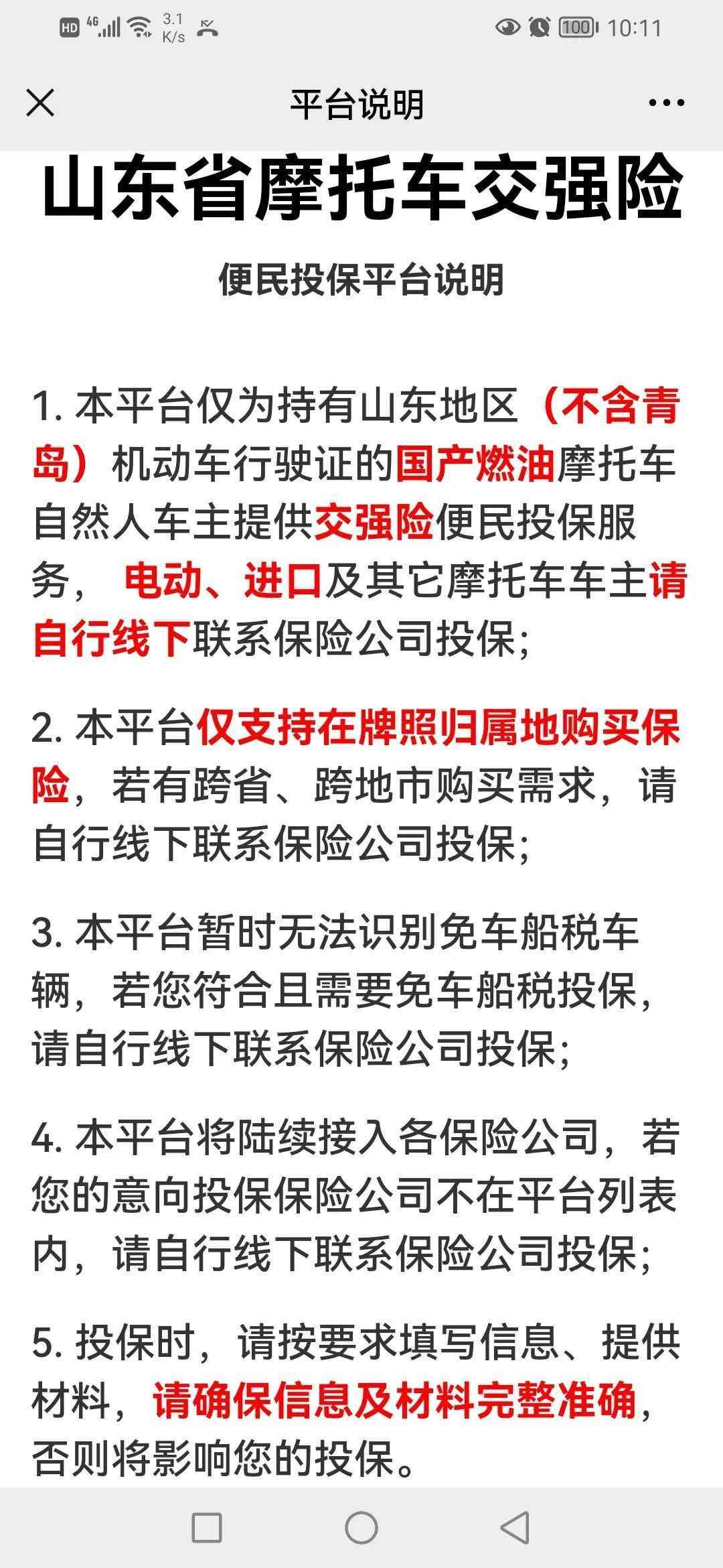 这几年买摩托车交强险的时候没少作难,我们这里只有2家保险公司能买摩托车交强险,但是好像他们很不高兴有人去买保险,我记得我去买的时候他们不是推托电脑出毛病就是让排号,这几年都是托熟人的关系才购买成功。今年又到买保险的时间了,我又犯难了,这几天正发愁怎么买呢,今天网上搜了一下,发现山东省去年7月份开通了摩托车便民投保平台,这下可方便了。