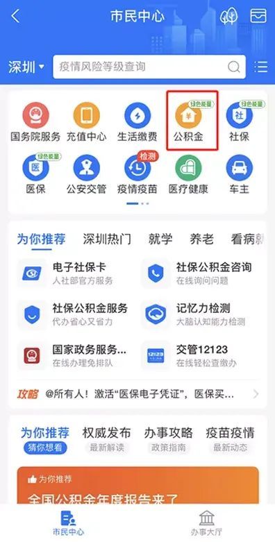 另外,也有很多朋友问公积金账户怎么查,这里同样在支付宝的“市民中心”就可以查到,点击“公积金”,再点“公积金查询”就可以看到了。