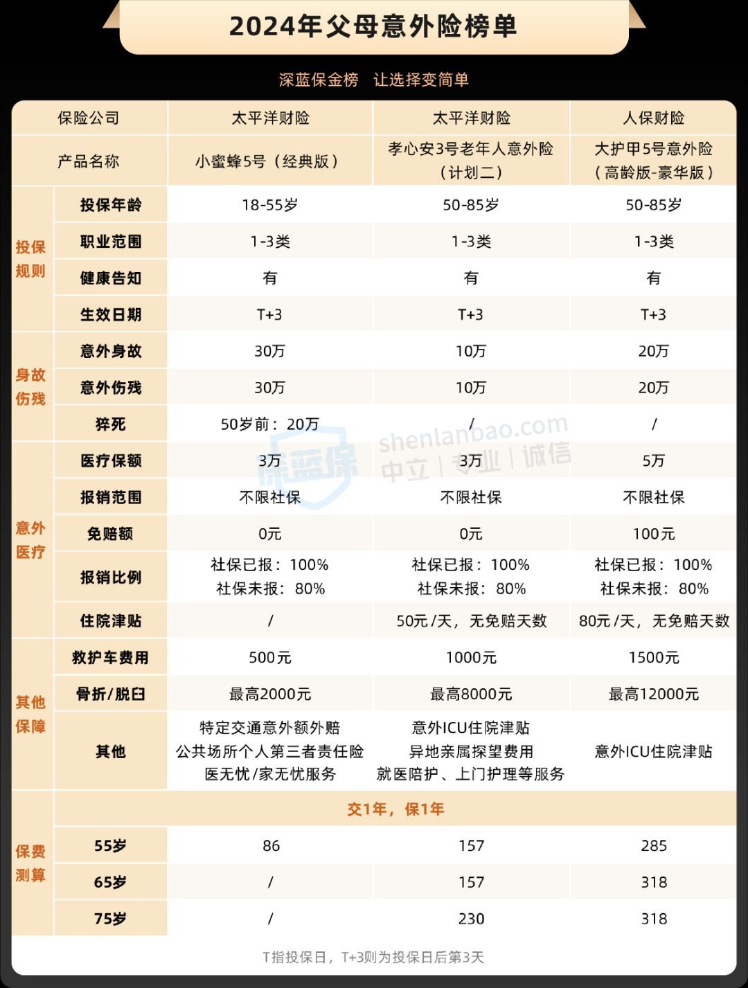 给爸妈挑选意外险时,优先关注意外医疗保障,包括报销范围(是否不限社保)、报销比例、免赔额以及爸妈常住地的医院能否报销。