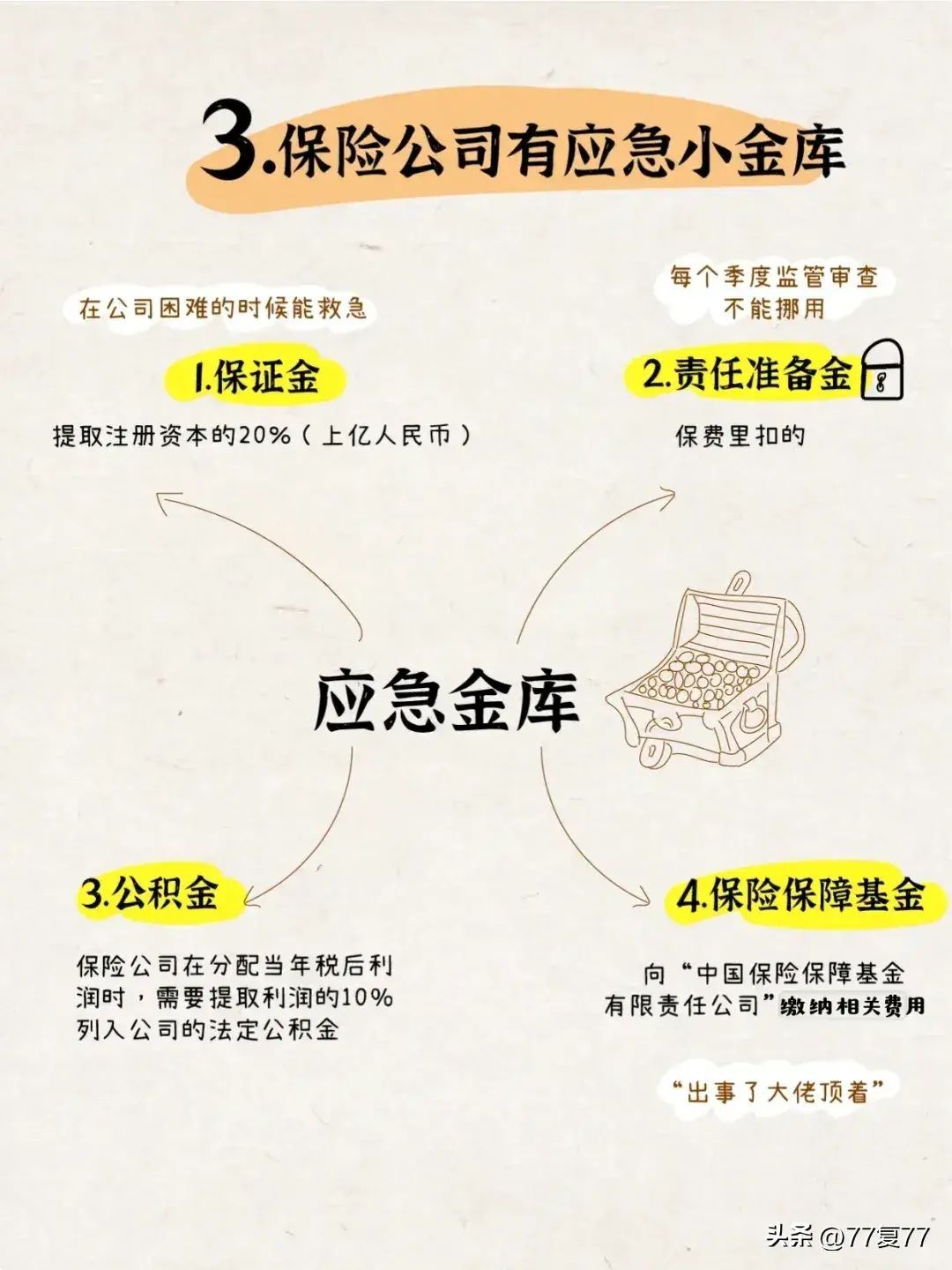 保险公司平常会存四笔钱,有国家帮忙存的,有自己存的,保证自己无论是平时还是特殊情况,都有钱赔