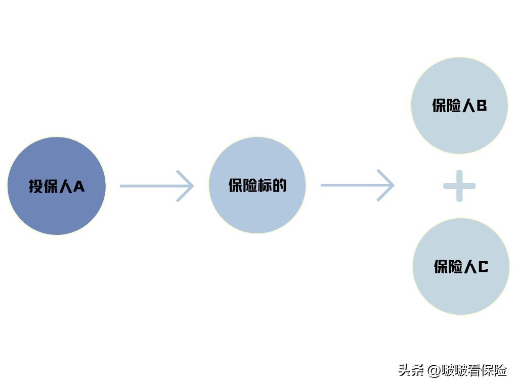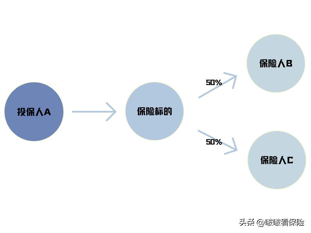 还是上面的例子,如果A找保险公司B签了合同,B又找保险公司C签,这种属于再保险;如果A和B、C同时签一份合同,这种属于共同保险;