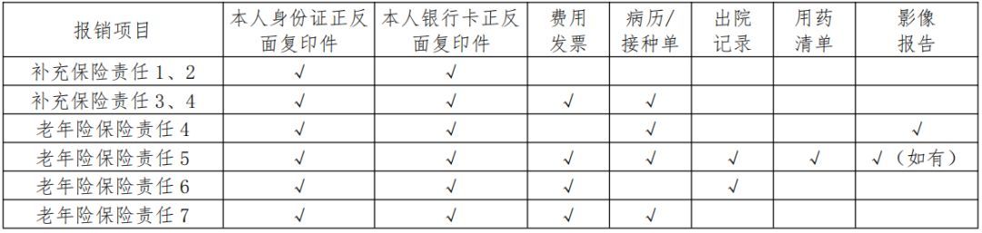 六、理赔材料(材料提交地点见七)