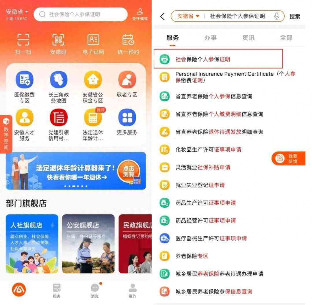 为便利参保人员轻松查社保、指尖办证明社保缴费证明开具攻略来了请查收查询指南下载并注册登录“皖事通”APP,在页面上方搜索框搜索“社会保险个人参保证明”,点击进入。