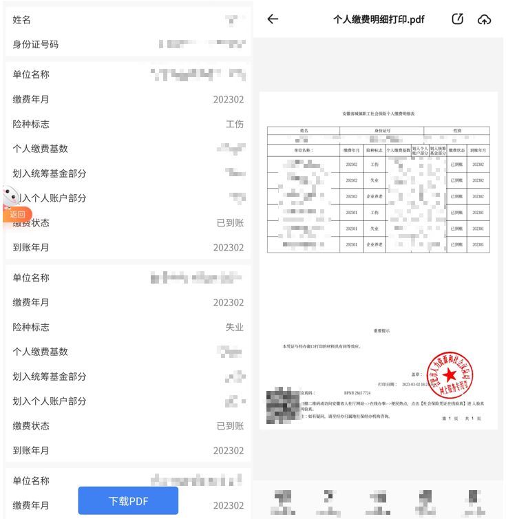 在查询页面,可以选择“下载PDF”到手机里进行查看打印。