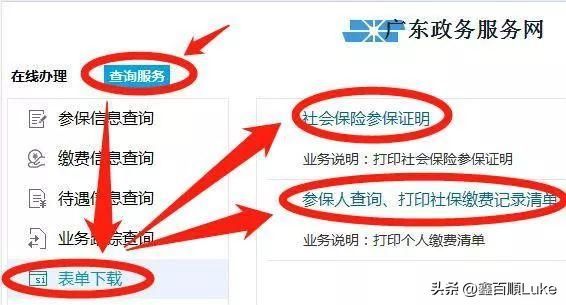 3、进入个人页面→点击“查询服务”→“表单下载”→“社会保险参保证明”或者“参保人查询、打印社保缴费记录清单”,系统将生成PDF文件,自行下载保存打印即可。