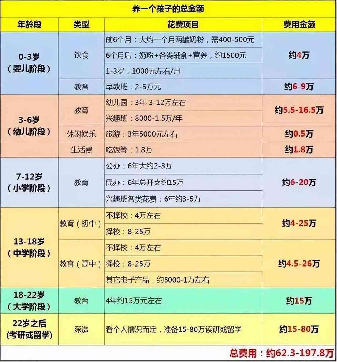 有研究表明,现在养大一个孩子,一线城市需要费用大概在2万左右,二普通三、四线也要62万左右。