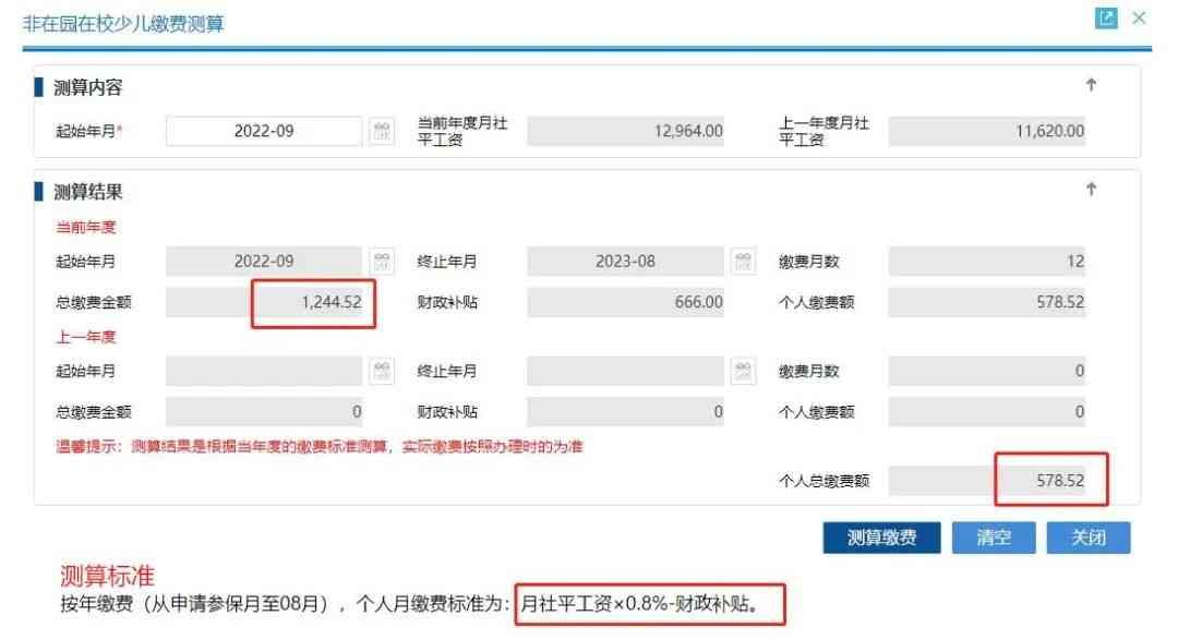 五、少儿医保缴费测算(少儿医保相当于职工医疗保险二档的待遇):