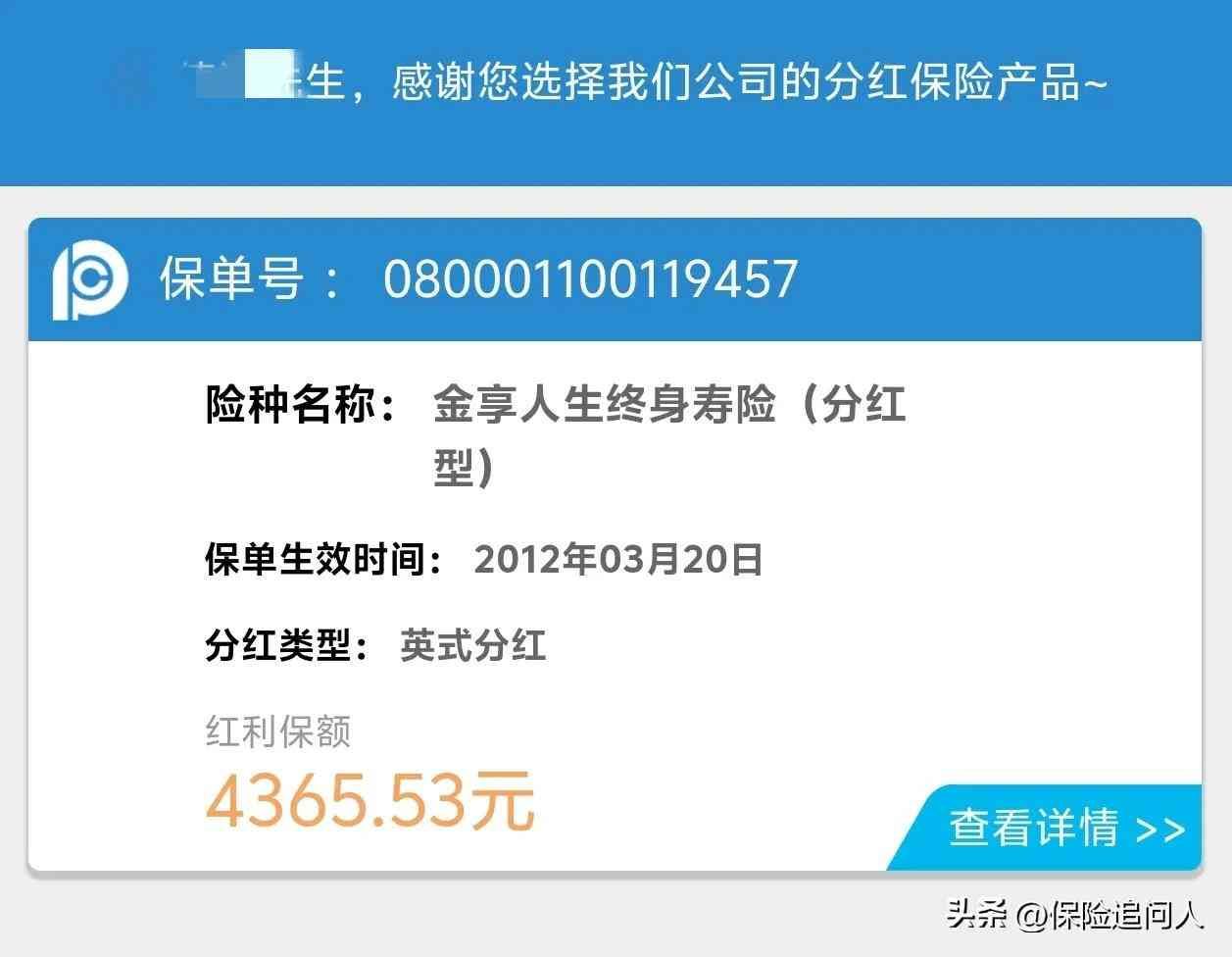2012年,我儿子一岁的时候,买的这款保险,名字叫太平洋金享人生终身寿险,今天我研究了一下研究明白了。