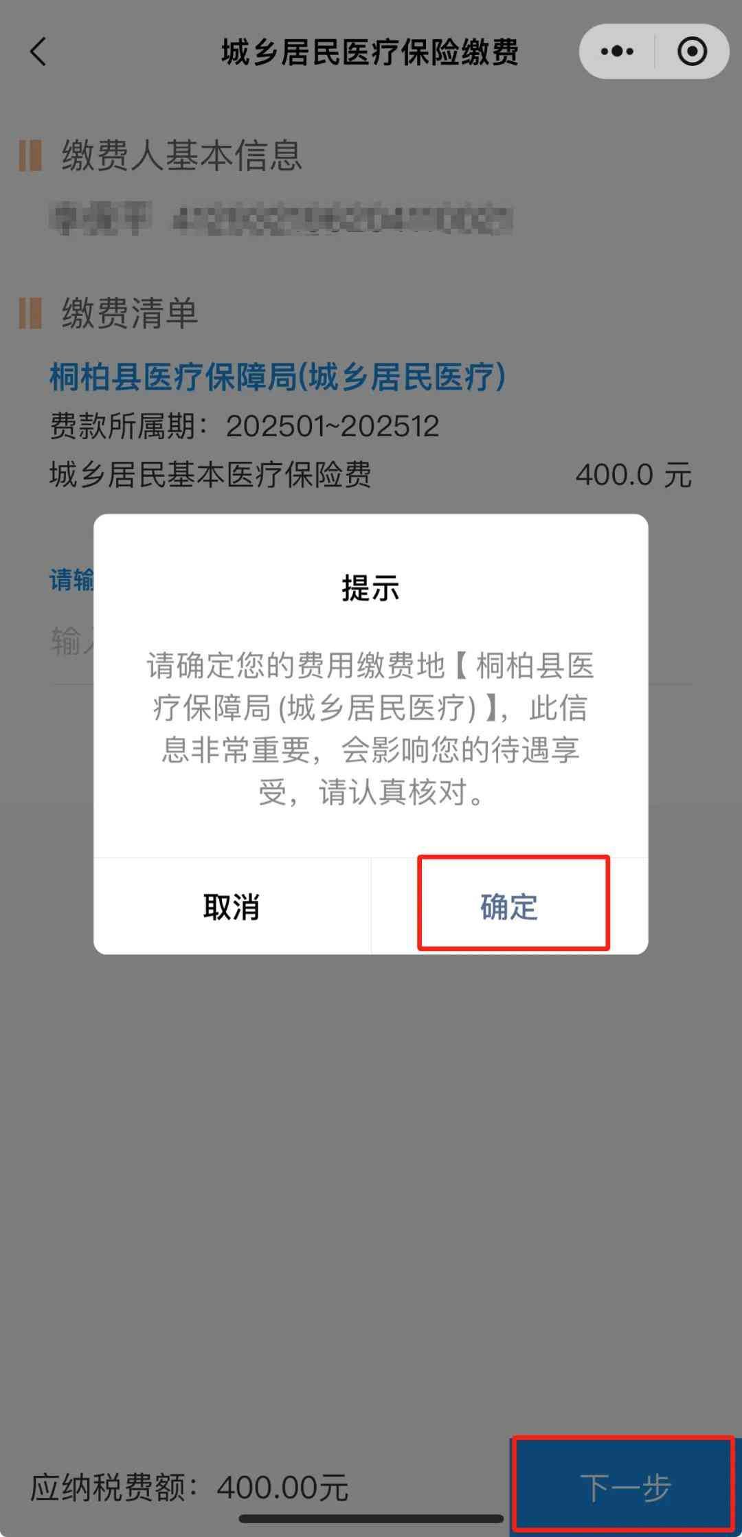 核对您的缴费信息后,进行缴费。
