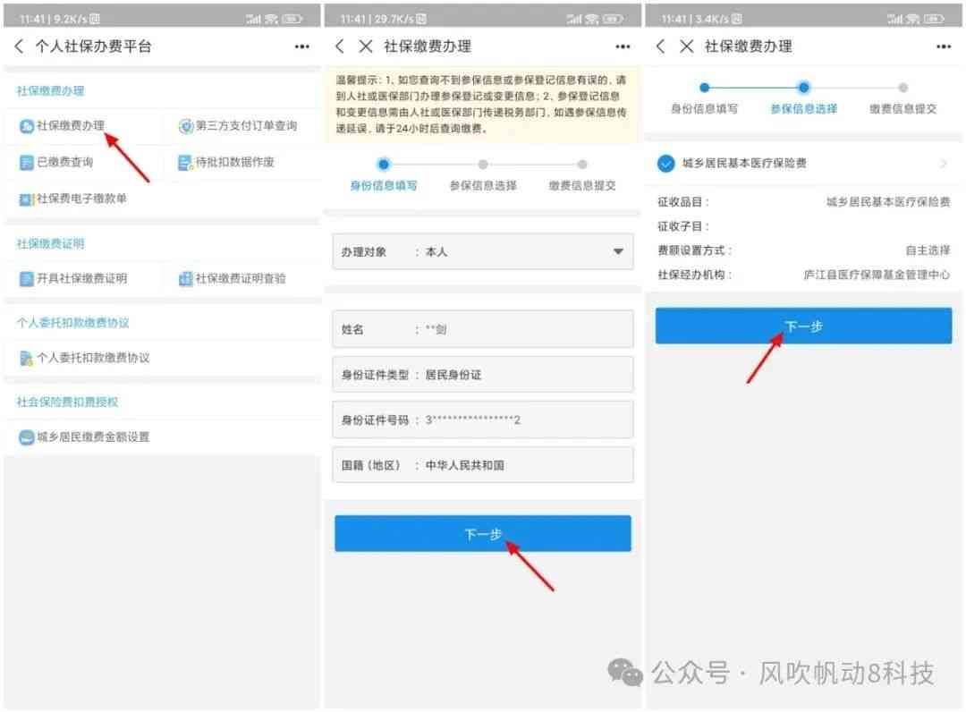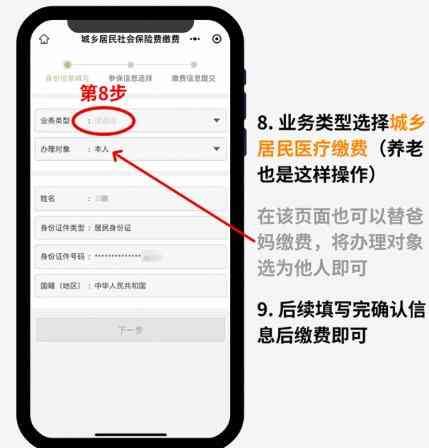 简化步骤:点击【市民中心】-【社保】-【社保缴费】-【社保缴费办理】-【下一步】-【城乡居民医疗保险费】-【下一步】。