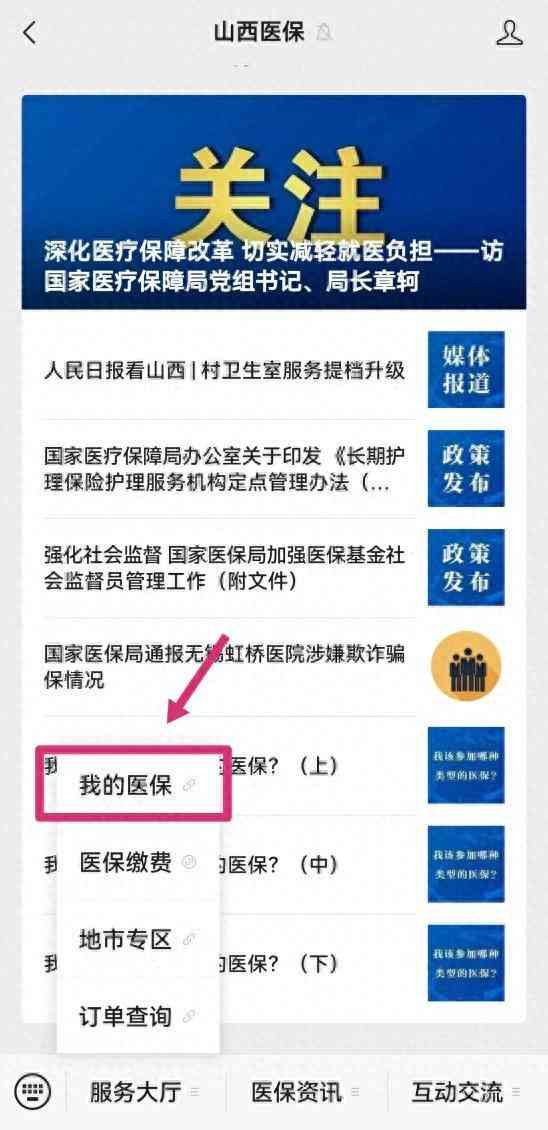 ▲在左下角依次点击“服务大厅”→我的医保(首次进入需要根据提示完成授权、注册)