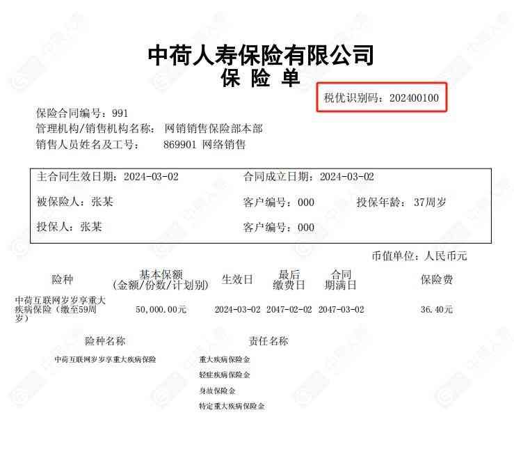 投保以后拿到保单,上面一定会一个「税优识别码」,一般是在保单的右上方,只有拿到这个码才能去操作抵税的。