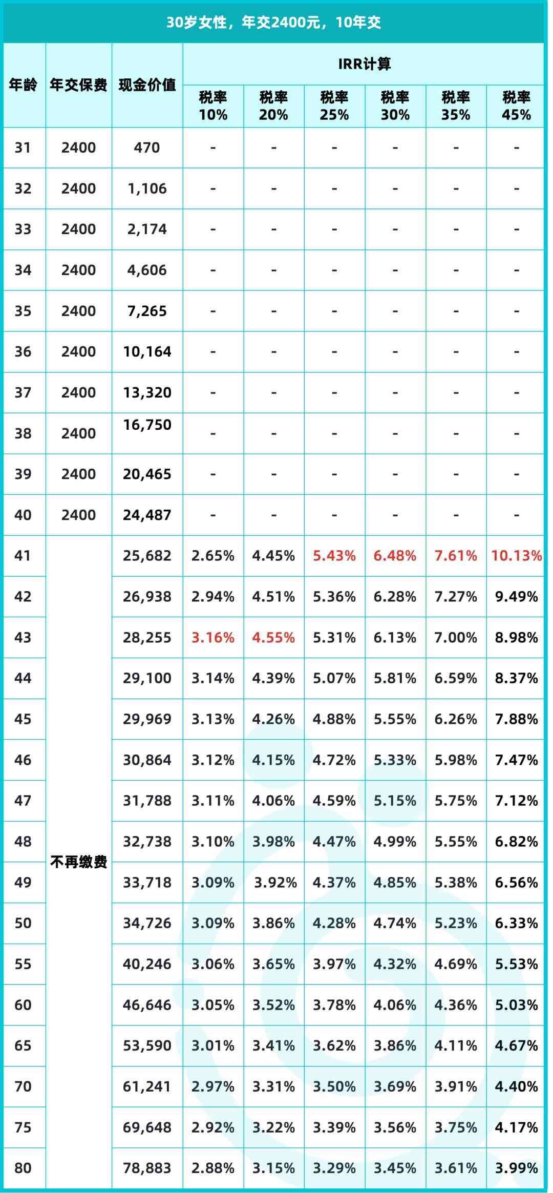 甚至对于一些税率超过25%的人而言,交费期满当年就退掉才是收益最大化的选择。
