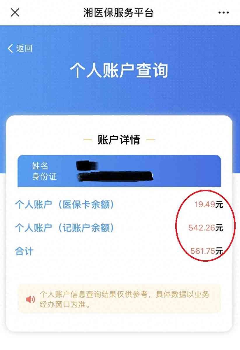 方法二:进入当地医保服务平台,比如湖南的就是“湘医保”,登录之后点击医保账户查询,就可以看到。