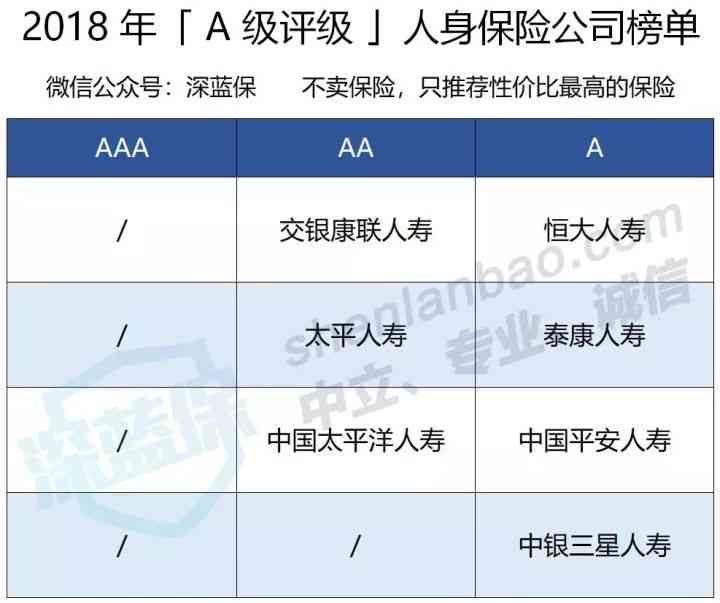 AAA 级暂时没有:目前还没有保险公司达到这个最好的级别,不过也让保险公司有了一个努力的目标。AA 级 3 家:除了大家比较熟悉的太平、太平洋,也有不常见的交银康联。A 级 4 家:知名度相对不高的恒大人寿、中银三星也成功入围,和泰康、平安评级相同。A 级作为服务最好的评分,并不都是常见的大公司,也有一些很少听说的公司。