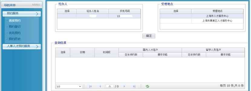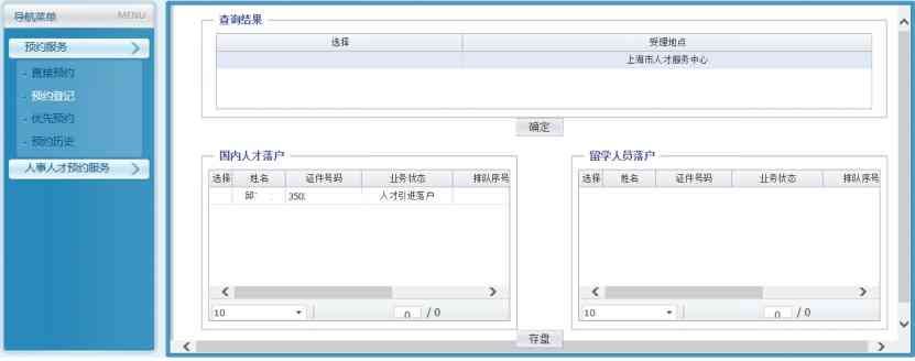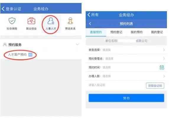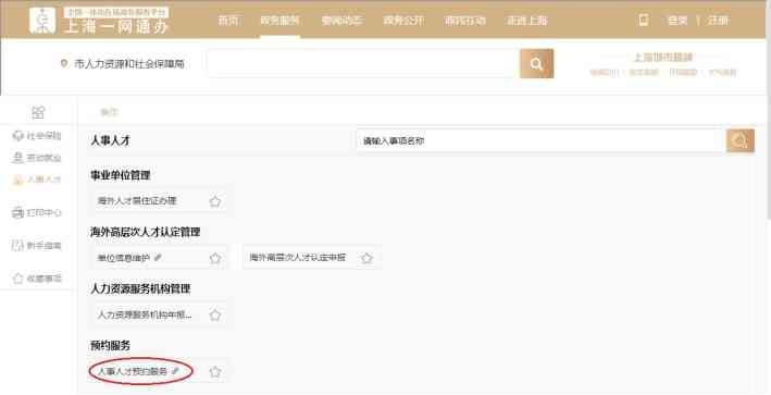 →人事人才→人事人才预约服务(菜单翻到第二页)→预约服务