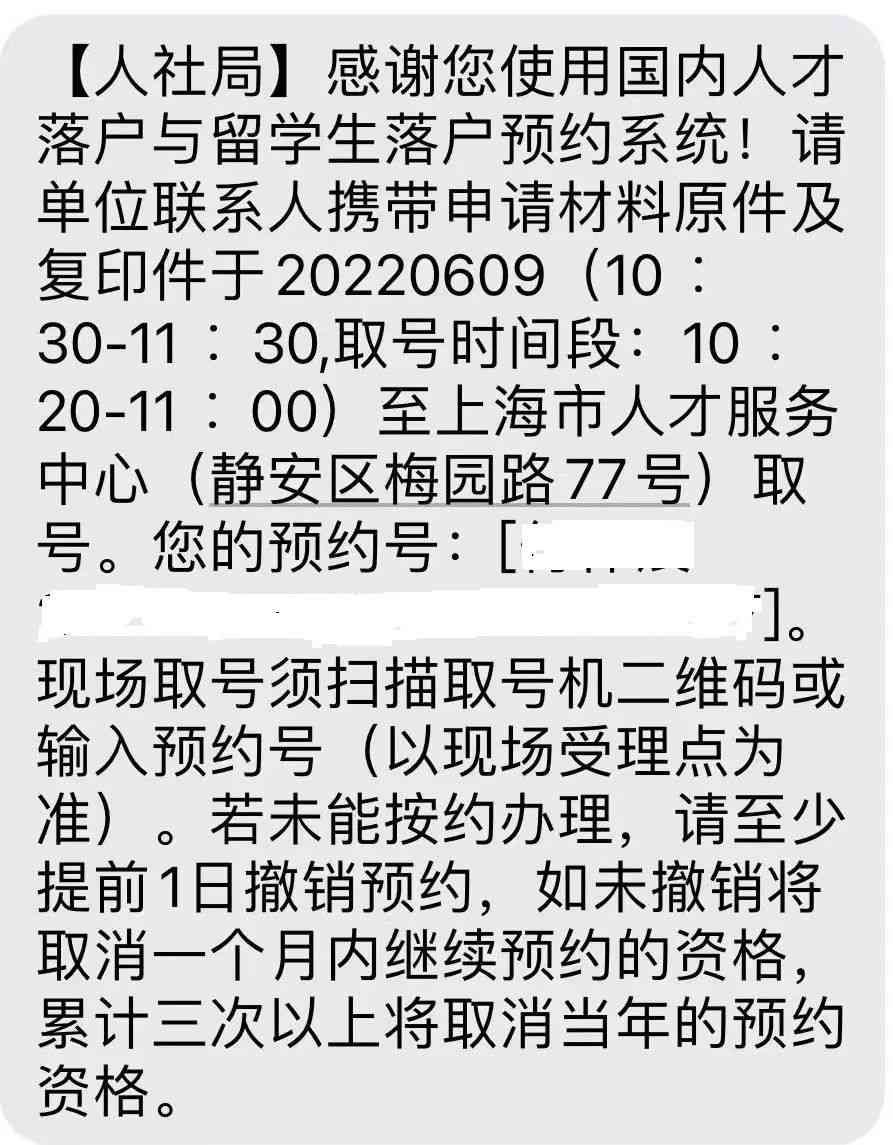 步骤六:完成预约!可凭预约短信和本人身份证原件在预约时间段内申请取号。