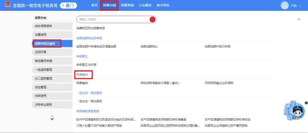 登录电子税务局后,依次点击【我要办税】-【税费申报及缴纳】-【税费缴纳】功能菜单,进入税费缴纳界面。
