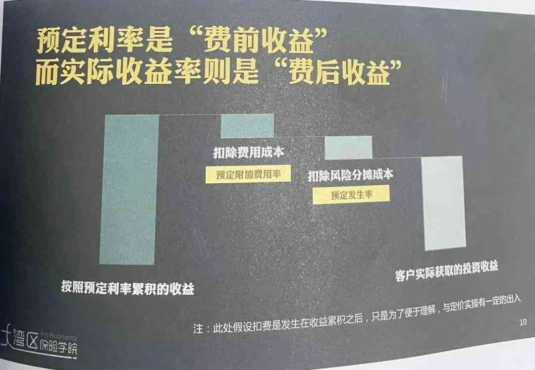因为预定利率还要包含一些费用成本和风险分摊成本,所以我们获得的实际利益,也就是内部回报率(IRR),一般会比预定利率低。
