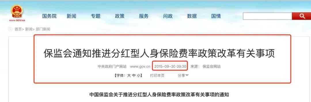2015年9月,当时的保监会公告通知推进分红型人身保险费率政策改革有关事项。