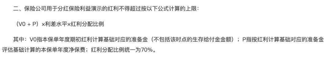 规定保险公司用于分红保险利益演示的红利不得超过按以下公式计算的上限: