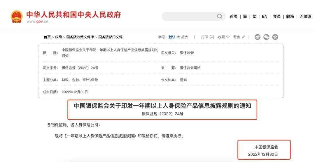 再到第三个阶段,也就是2022年12月,银保监会关于印发一年期以上人身保险产品信息披露规则的通知。
