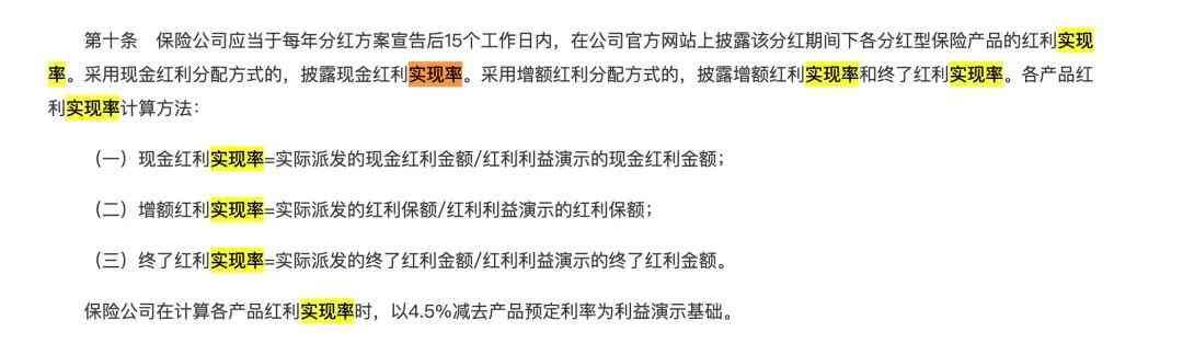 保险公司在计算各产品红利实现率时,以4.5%减去产品预定利率为利益演示基础。