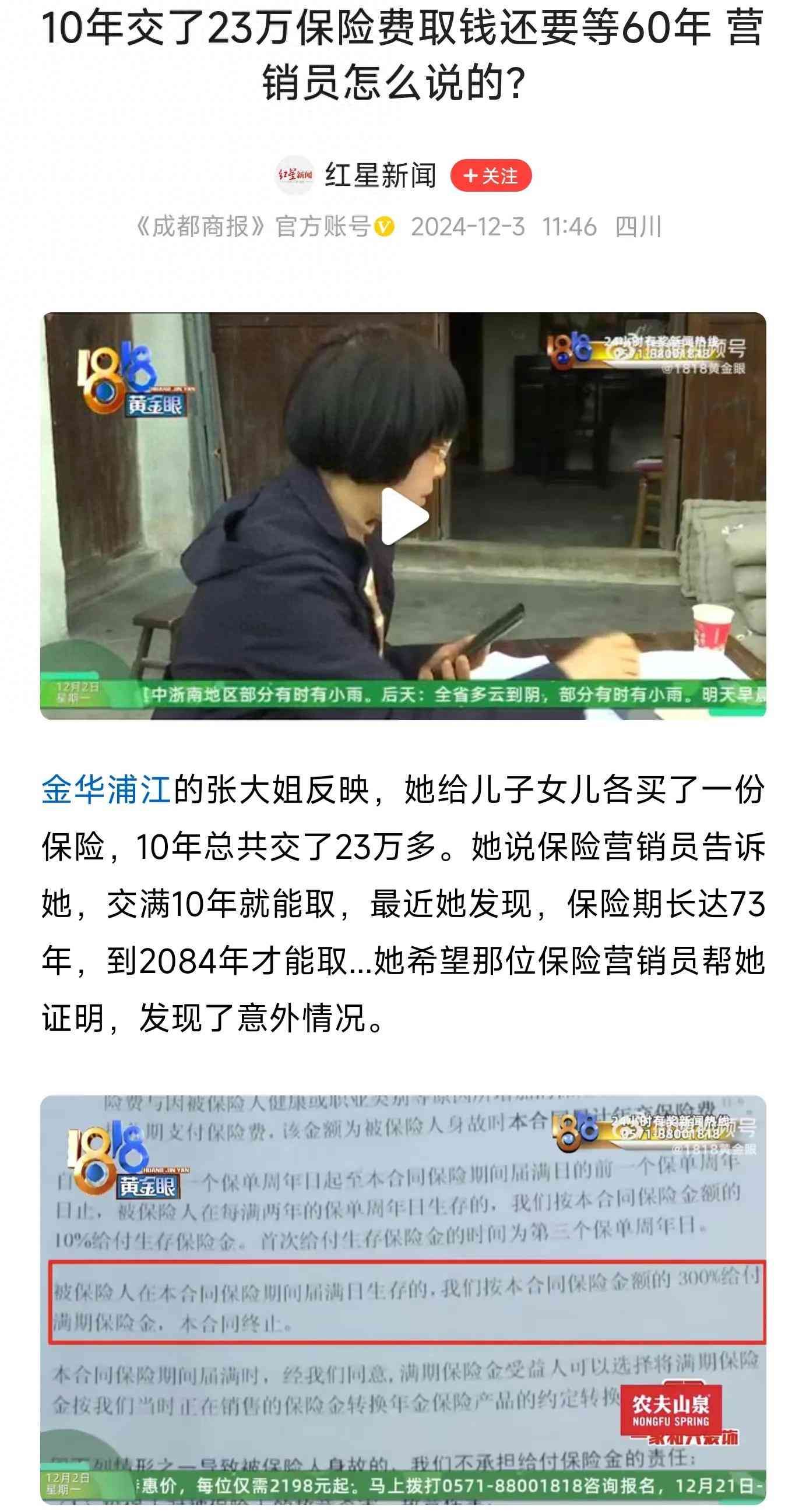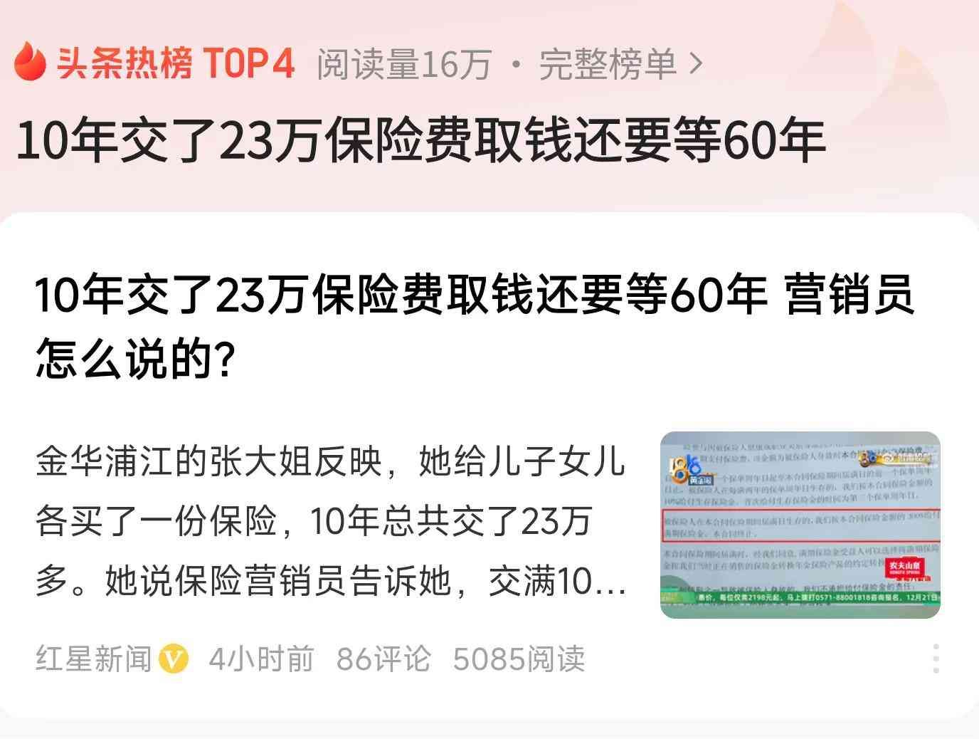 10年交了23万保险费取钱还要等60年 营销员怎么说的?
