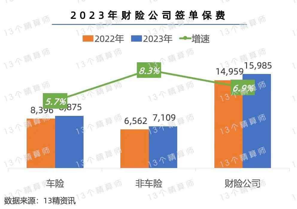 首先,从行业整体角度看,2023年85家财险公司,签单保费为1.59万亿,同比增长6.9%。