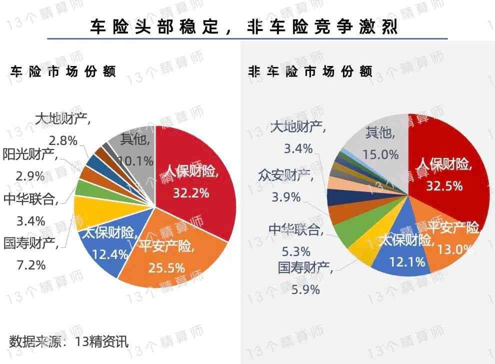 此外,从上图可见,老三家在车险市场所占份额近70%,在非车险市场所占份额却不足58%,也侧面反映出车险市场的市场集中度更高。