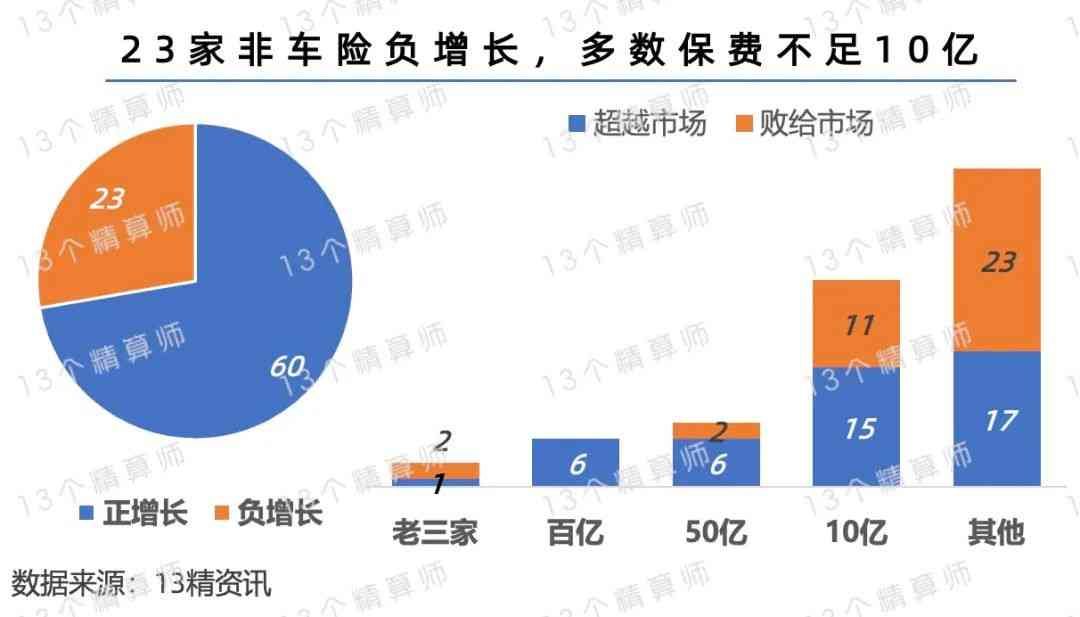 而且,非车险保费负增长的只有23家公司,也大多都集中在不足10亿的公司中。