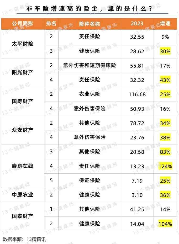 那么,这些非车险高速增长的公司,到底是依靠的什么业务呢?